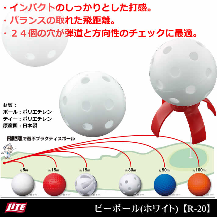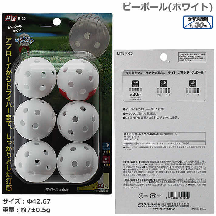 商品名 : ボール 練習用品 室内 ゴルフ用品 ライト ピーボール ホワイト R-20 【IR】