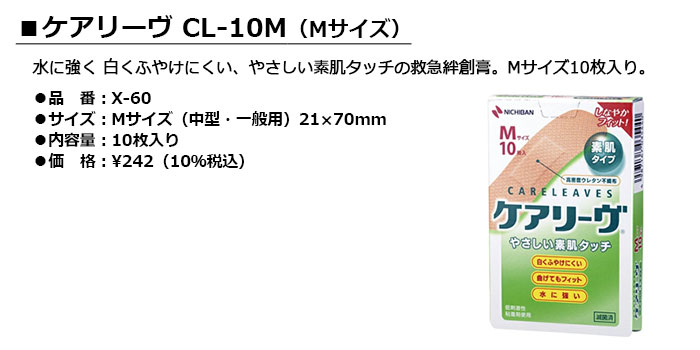 商品名 : LITE -ライト- ケアリーヴ CL-10M【X-60】Mサイズ 10枚入りキズバン・バンデージ・はんそうこう【ネコポスなら送料300円♪】