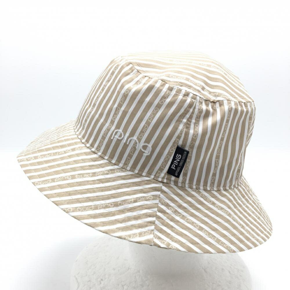 商品名 : 【超美品】ピン バケットハット ベージュ×白 ストライプ FR ゴルフウェア 2025年モデル PING