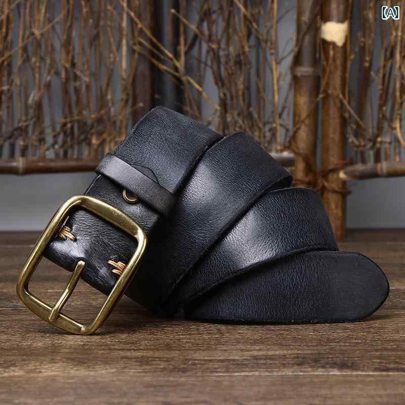 ベルト メンズ 本革 牛革 レトロ ヴィンテージ レザーベルト カジュアル デニム ワークベルト ブラック ブラウン カーキ レッドブラウン ベルト(メンズ)