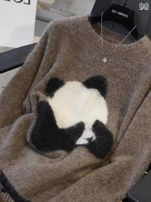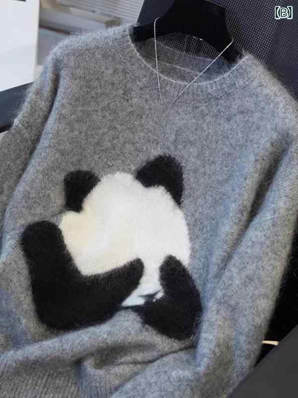 商品名 : ニットセーター レディース 秋冬 ゆったり 落肩 パンダ刺繍 丸首 厚手 羊毛 ウール インナー 暖か 柔らかい かわいい カジュアル 部屋着 スリム ルーズ フィット