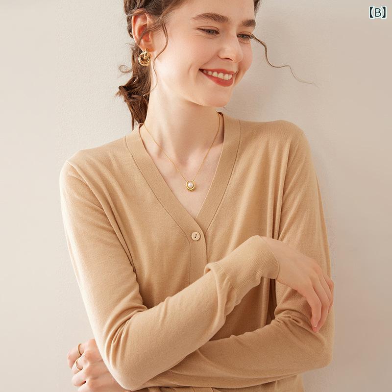 商品名 : レディース 春夏 Vネック カーディガン 薄手 ニットセーター 絹 カシミア混 インナー アウター 接触冷感 軽量 吸湿速乾 高級感