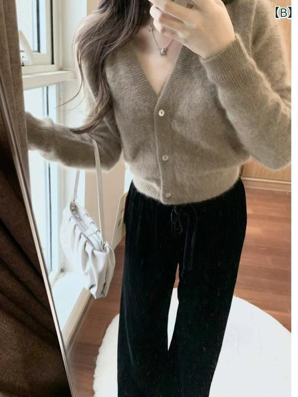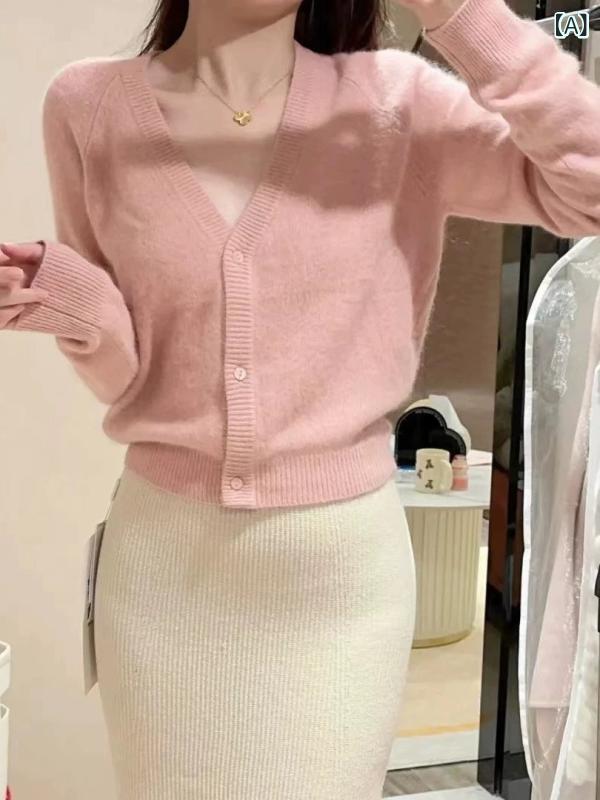 商品名 : カーディガン レディース ウール Vネック ラグランスリーブ ショート丈 春秋 ニット トップス 日韓風 休闲