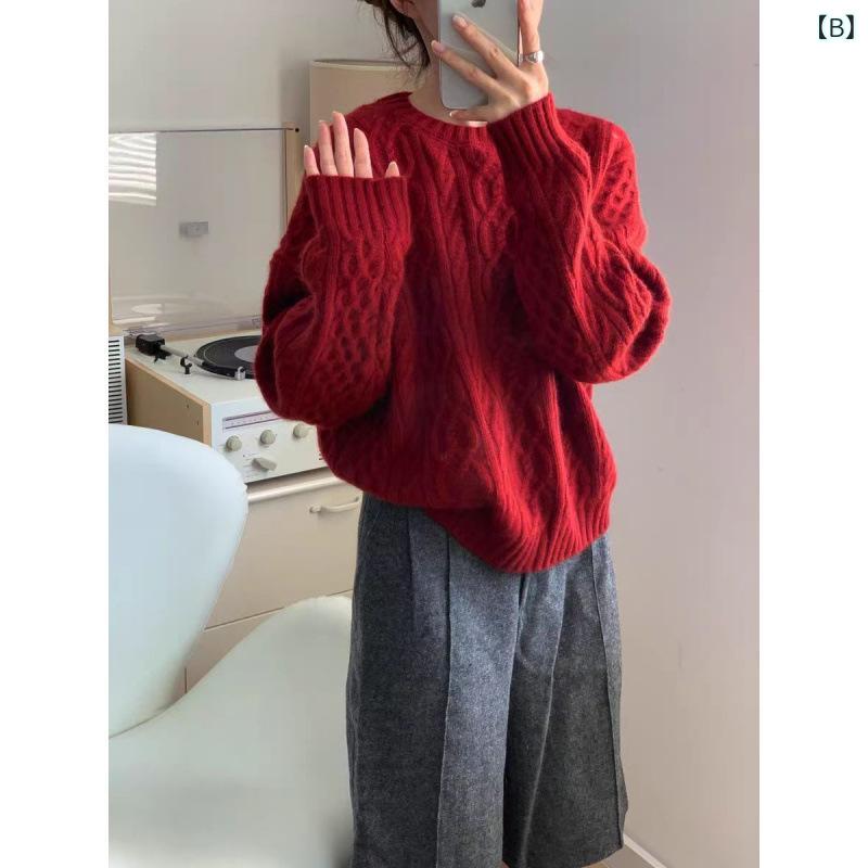 商品名 : レディース ニットセーター 秋冬 ゆったり リラックス風 厚手 カシミヤ ケーブル編み クルーネック インナー用 羊毛 毛織トップス 接触冷感 吸湿速乾 軽量 高級感