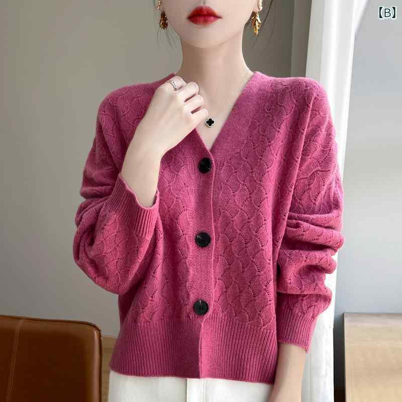 商品名 : 秋冬 レディース ニットカーディガン Vネック 提花 透け 長袖 薄手 ゆったり ウール セーター 着回し コーディネート