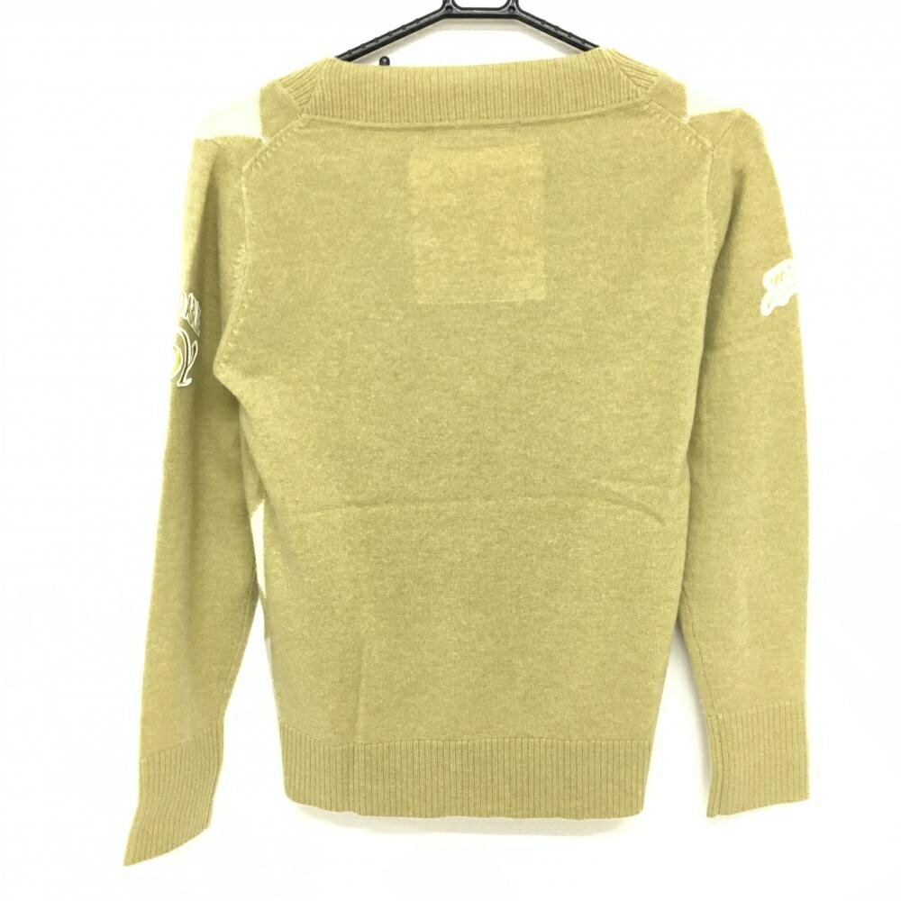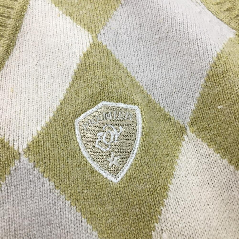 商品名 : 【美品】ゾーイ 長袖ニットセーター イエローグリーン×アイボリー ダイヤ柄 ロゴ刺しゅう 袖ワッペン レディース 38(M) ゴルフウェア ZOY