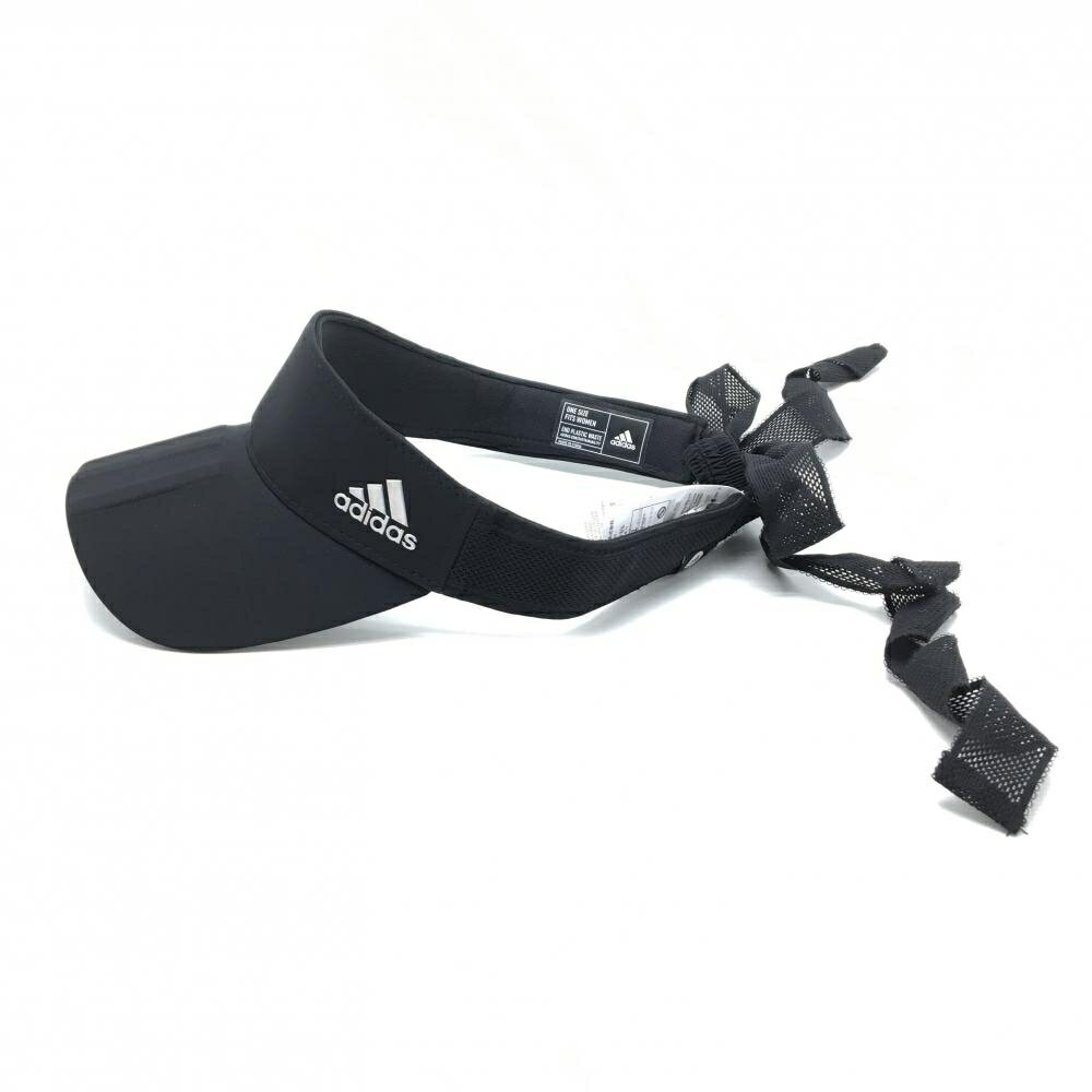 商品名 : 【ポイント10倍!楽天スーパーセール期間限定】【美品】アディダス サンバイザー 黒 後ろメッシュリボン ロゴ レディース フリーサイズ ゴルフウェア adidas