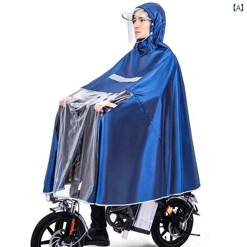 商品名 : レインコート レディース 自転車 かご ポンチョ ロング 通勤 おしゃれ 収納袋 コンパクト バイク バイザー 二重 ツバ付き フード 防水 撥水 防風 雨具 カッパ 梅雨対策 メンズ ママ 送迎 原付 夜間反射 オックスフォード 青 赤 紫