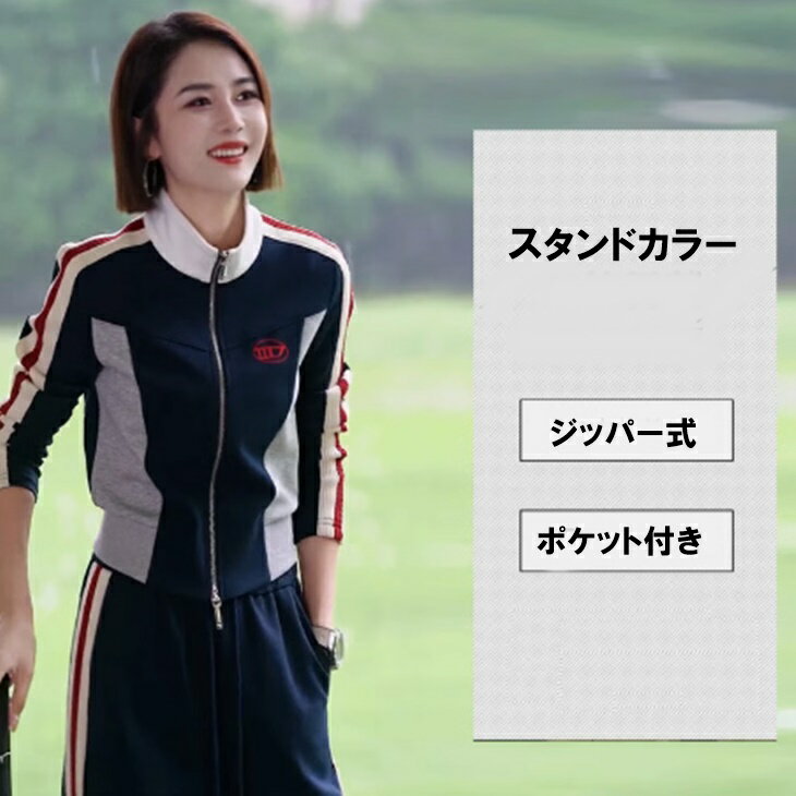 商品名 : レディース ゴルフウエア オールシーズン 春夏秋冬 長袖ジャケット ワイドパンツ セットアップ ツーピース カジュアル ゴルフウエア 動きやすい ストレッチ素材 韓国 ゴルフ 被らないインポート ゴルフウエア 大人カジュアル ゴルフウエア