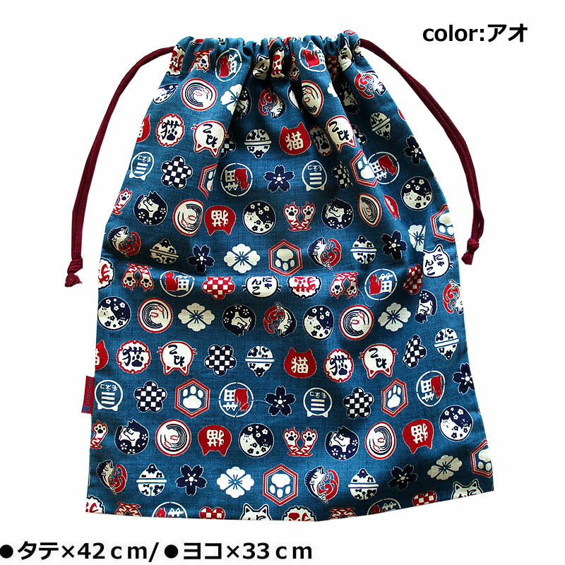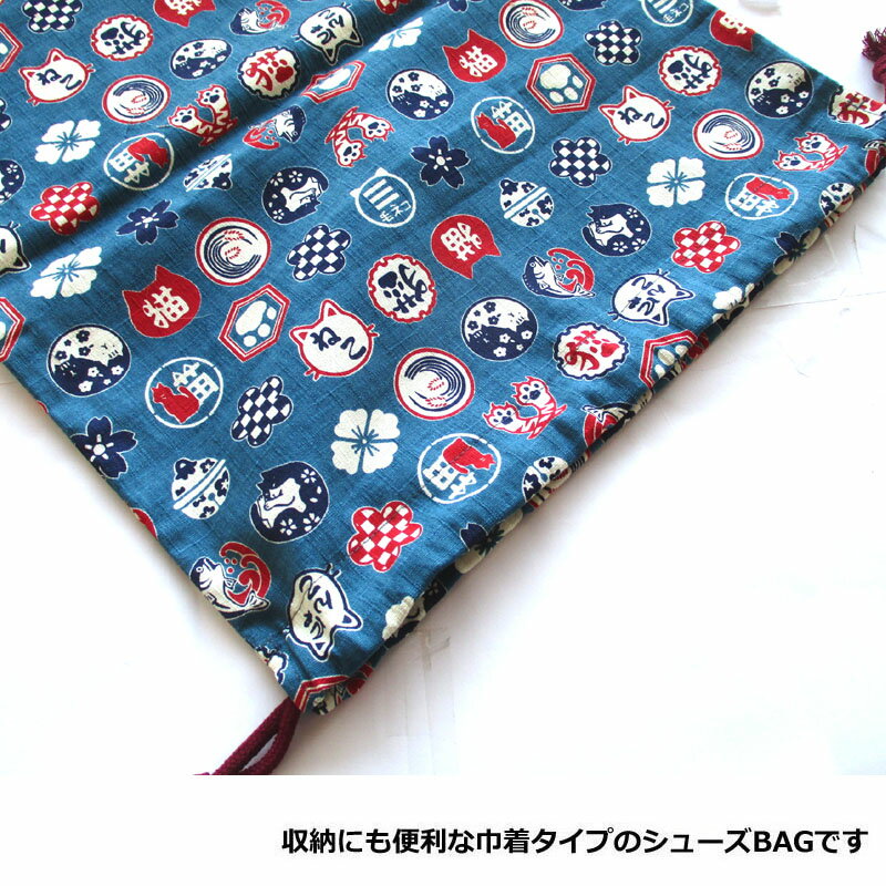 商品名 : シューズバック 猫紋 アオ和柄 巾着シューズBAG