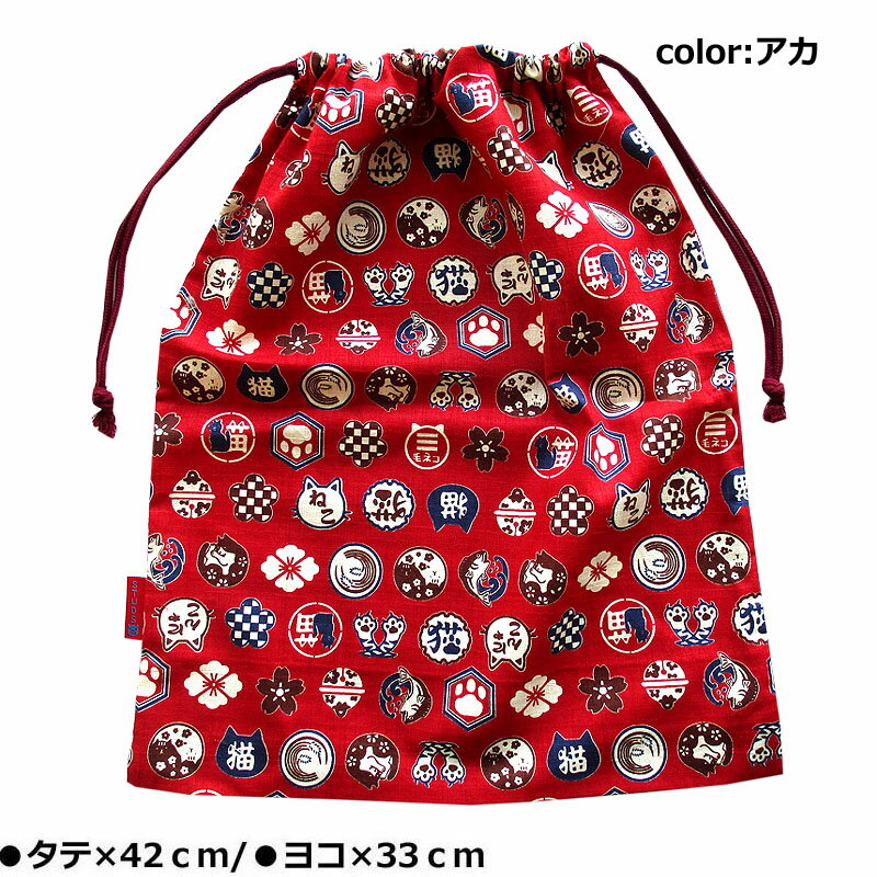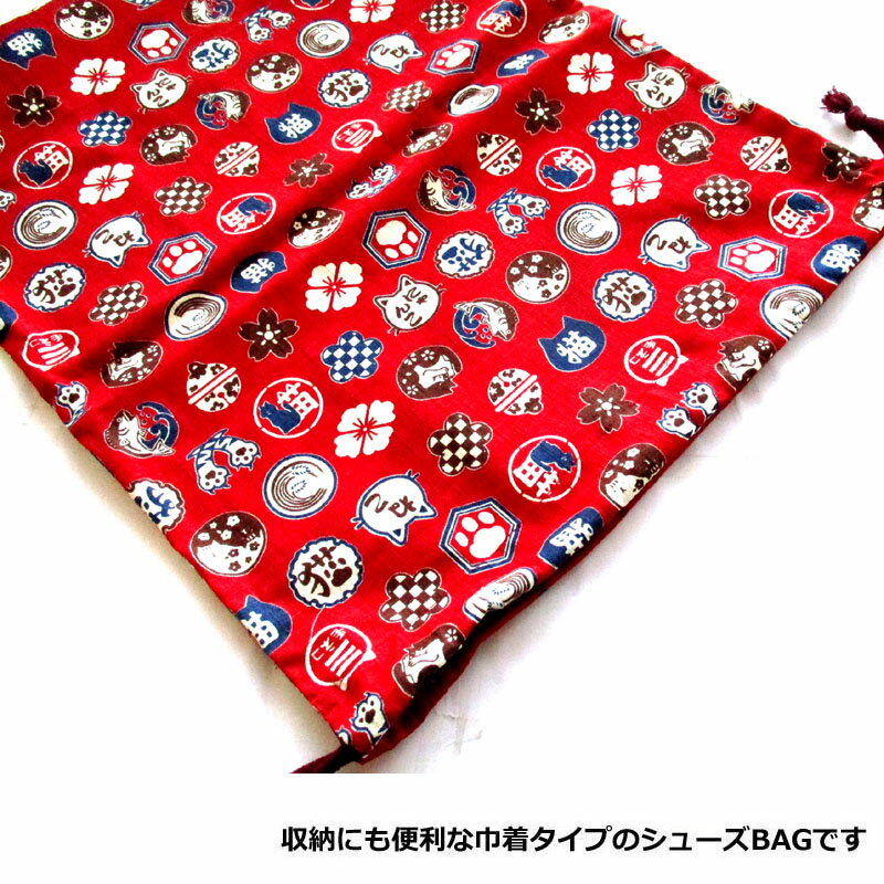 商品名 : シューズバック 猫紋 アカ和柄 巾着シューズBAG