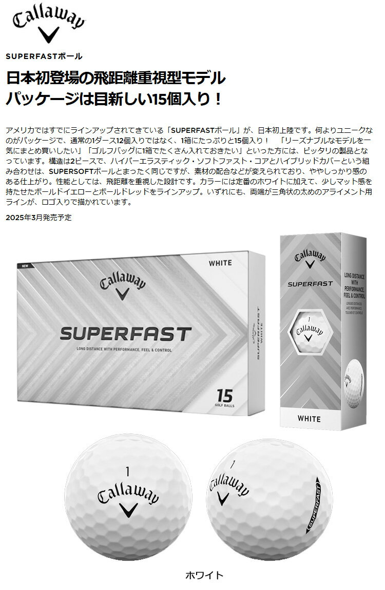 商品名 : 【2ダースセット】キャロウェイ SUPERFAST (スーパーファースト) ゴルフボール 2ダース(30球入り) 2025年モデル(日本正規品)