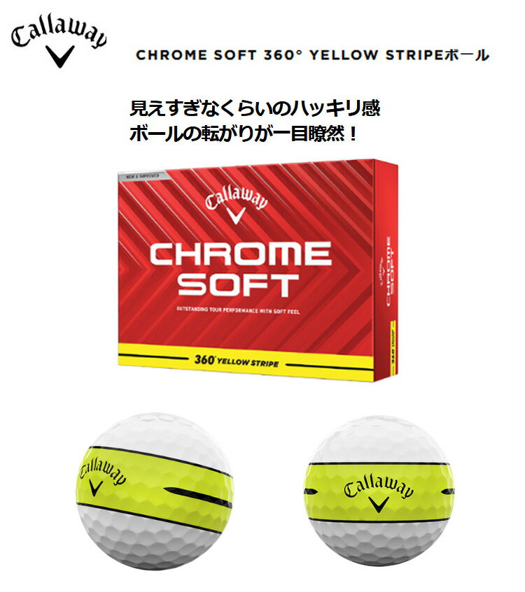 商品名 : 【オリジナルマークプリントボール(納期2-3日)】キャロウェイ クロムソフト 360 イエローストライプ ゴルフボール 1ダース (12球入り) 2025年 バースデイ・メッセージ マーク入り