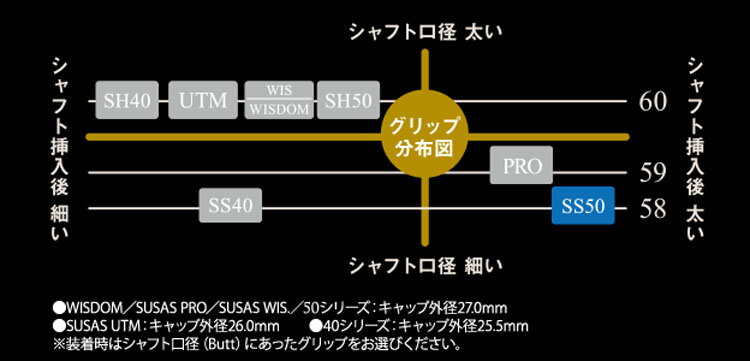 商品名 : SUSAS スウサス SS50 ウッド&アイアン用グリップ 【全11色】 【240円メール便対応商品】【ゴルフ】