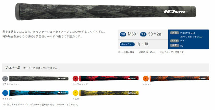 説明 :■イオミック スティッキー ブラック アーミー 2.3 ■イオミック スティッキーアーミーから、ブラックが降臨。 アートグリップシリーズ、スティッキー・アーミーのブラックバージョン。 ※メール対応商品(但梱包サイズを超える数量8本以上をご購入の方は通常発送となります。) サイズ 重量 バックライン M60 50±2g 有・無