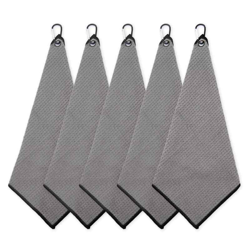ゴルフタオル 【5枚セット】 タオル スポーツタオル ハンドタオル マイクロファイバー カラビナクリップ付 柔らかい 収納 携帯 ゴルフクラブ ゴルフボール