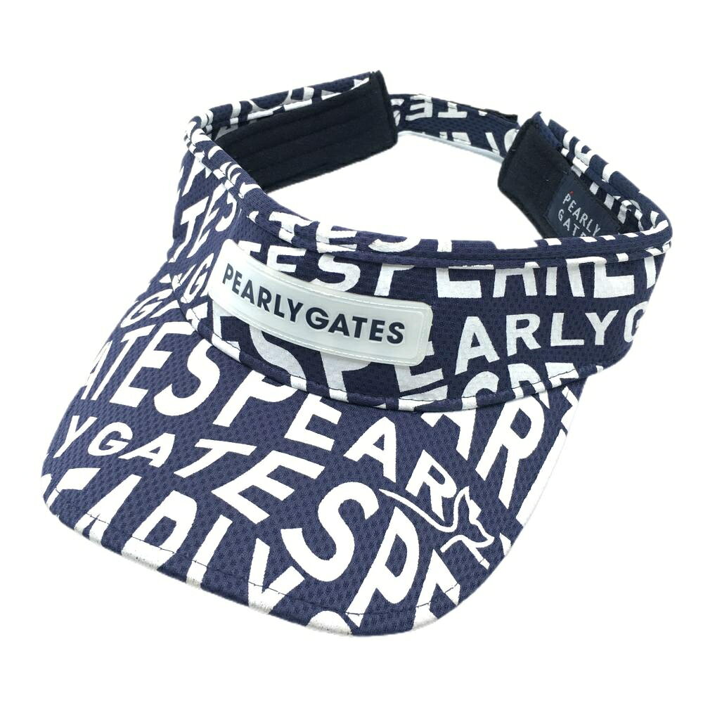 パーリーゲイツ サンバイザー ネイビー×白 ロゴ総柄 汗取りパッド付 FR ゴルフウェア PEARLY GATES